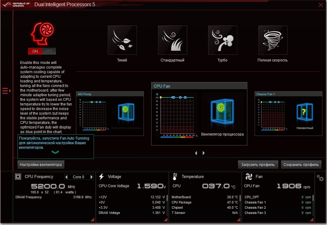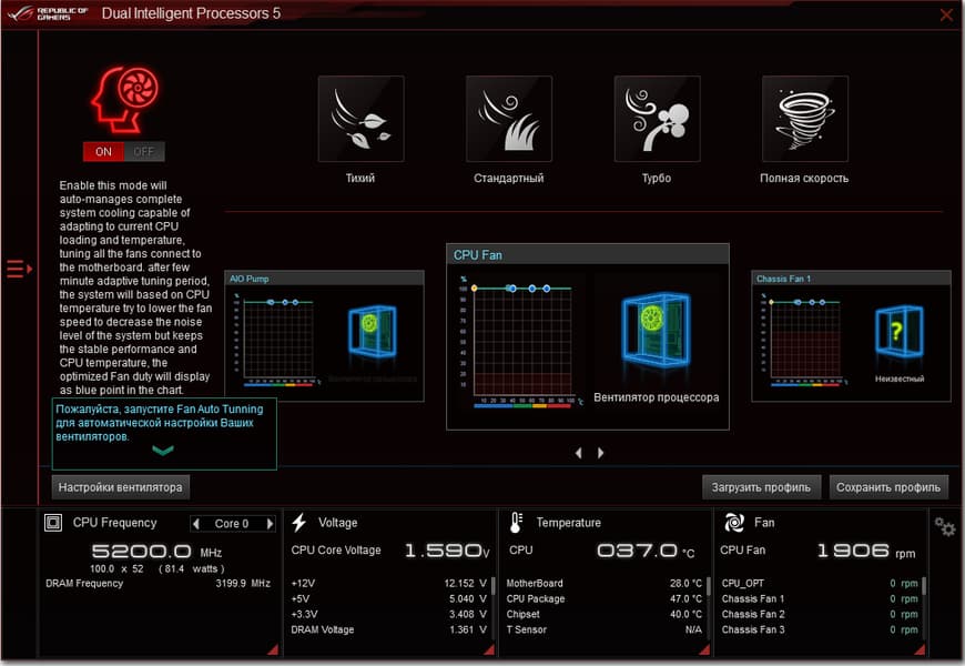 Если у вас к одному гнезду подключено до трех вентиляторов (через тройники-удлинители), то с помощью этого контроллера (не удалось найти, какой реальный производитель данного процессора прячется под маркировкой Asus) появилась возможность управлять оборотами каждого вентилятора отдельно.