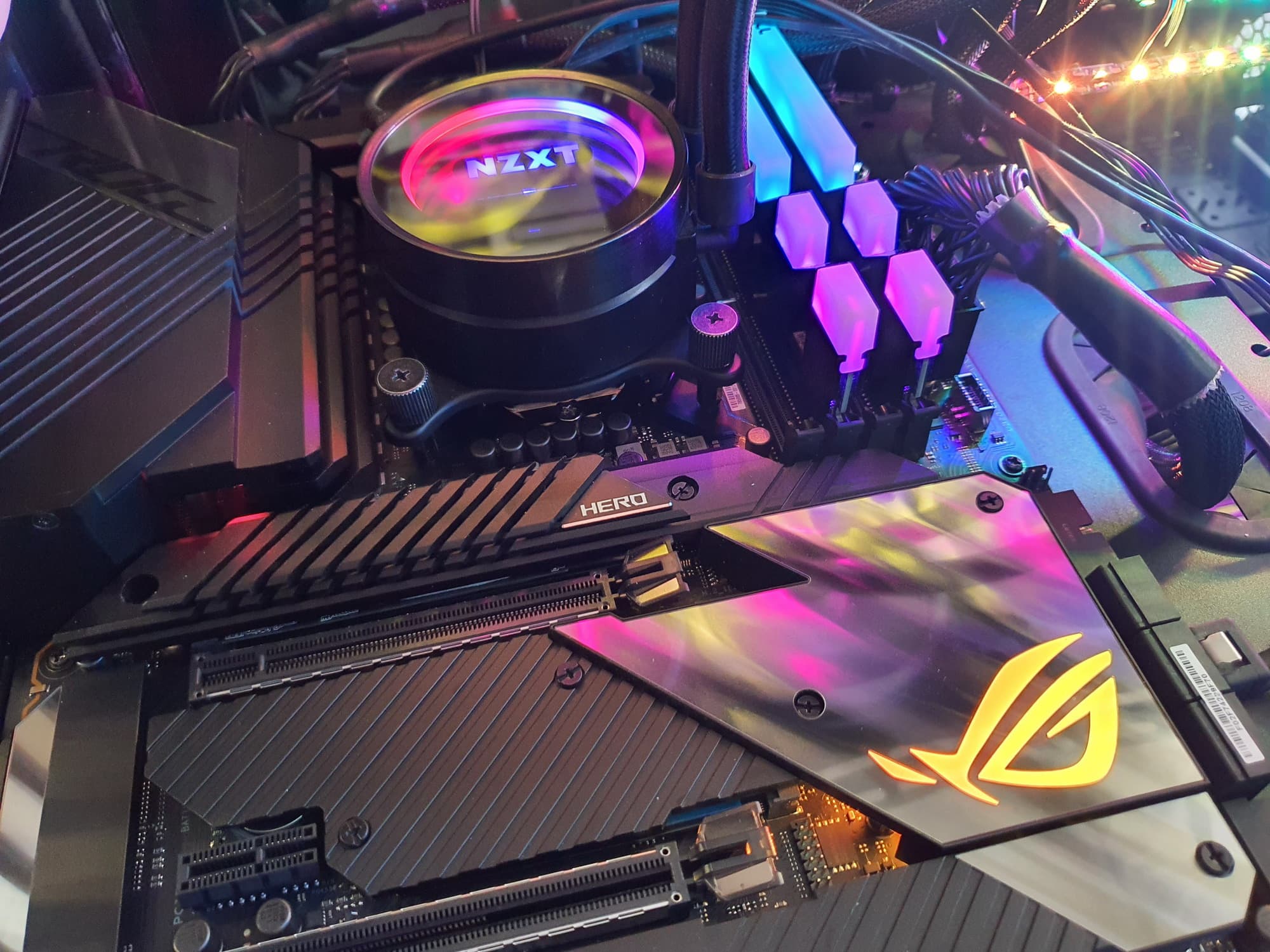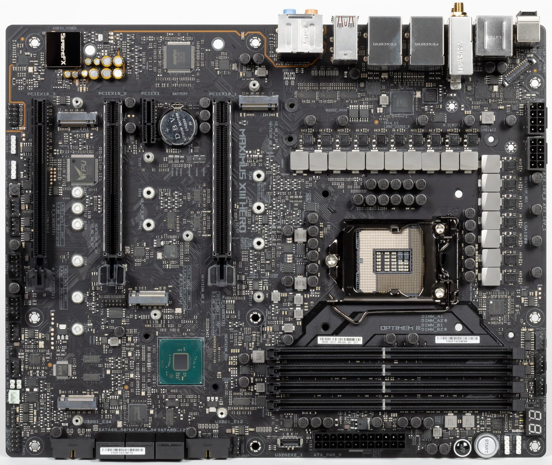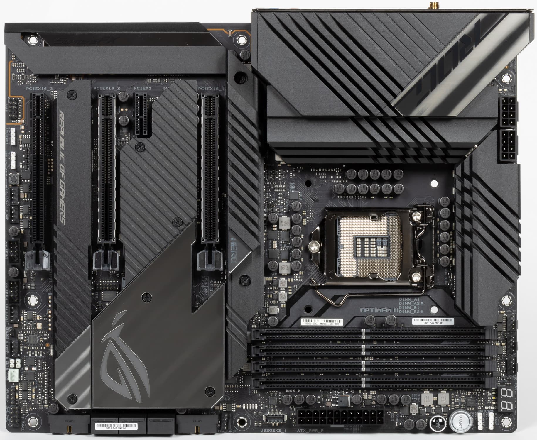 Возвращаюсь к самой материнской плате, которая относится к топовому суббренду ROG, поэтому перед нами почти флагман (мы помним, что самая-самая в этой линейке — материнка c суффиксом Extreme, а Hero — на ступень ниже).