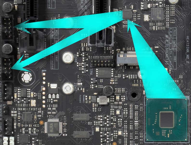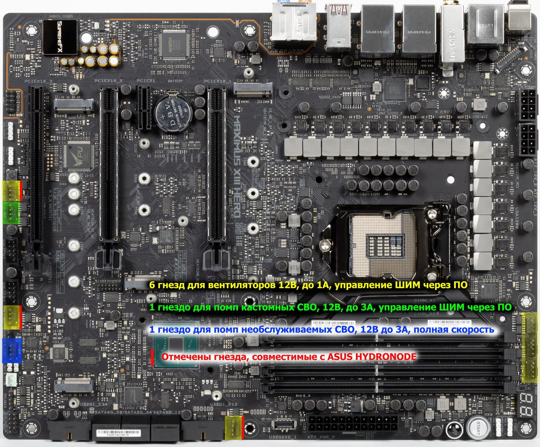 Через ПО или BIOS контролируется все гнезда для подключения воздушных вентиляторов или помп: они могут управляться как через ШИМ, так и банальным изменением напряжения/тока.В этой сфере у Asus появилось новшество в виде Asus Hydronode.