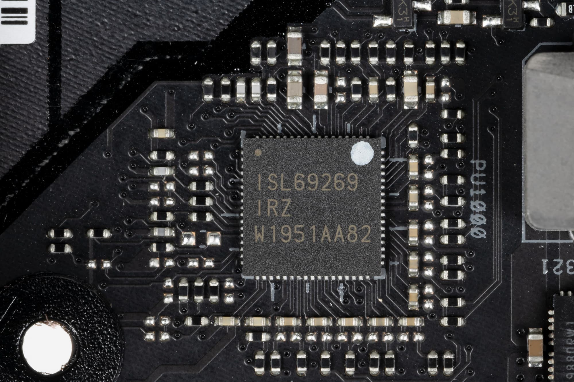 Управляет схемой ШИМ-контроллер ISL69269 от Renesas (ex Intersil), рассчитанный максимум на 8-12 фаз (зависит от модификации).