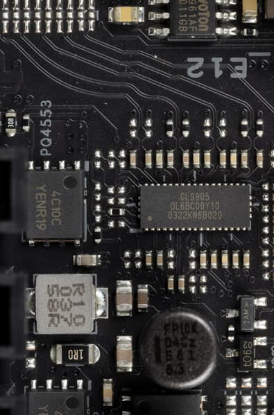 - 1 порт USB 3.2 Gen2x2: реализован с помощью Z590 (на это ушел 1 USB 3.2 Gen2) и двух «помощников»: хаба ITE IT8851 (который образует USB 3.2 Gen1) и усилителя Genesys Logic GL9905 (который преобразует сие в USB 3.2 Gen2) и представлен внутренним портом Type-C (для подключения к соответствующему разъему на передней панели корпуса);
