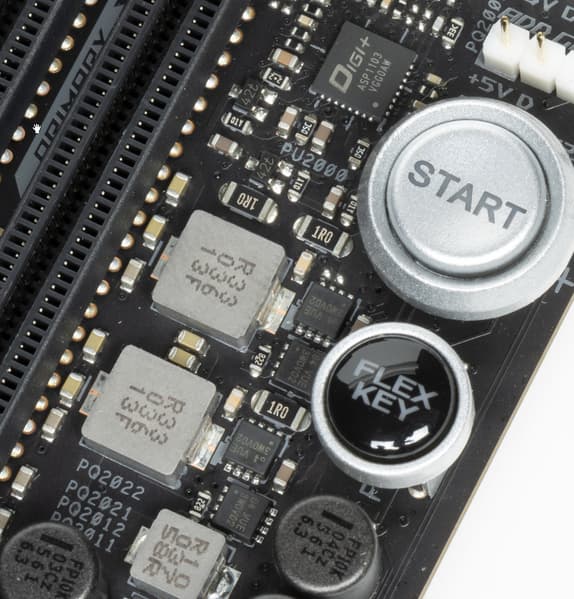 Два первых («процессорных») слота PCIe x16 имеют металлическое армирование из нержавеющей стали, которое увеличивает их надежность (что может быть важным в случае довольно частой смены видеокарт, но что более важно: такой слот легче выдержит нагрузку на изгиб в случае установки очень тяжелой видеокарты топового уровня. Кроме того, такая защита предохраняет слоты от электромагнитных помех.
