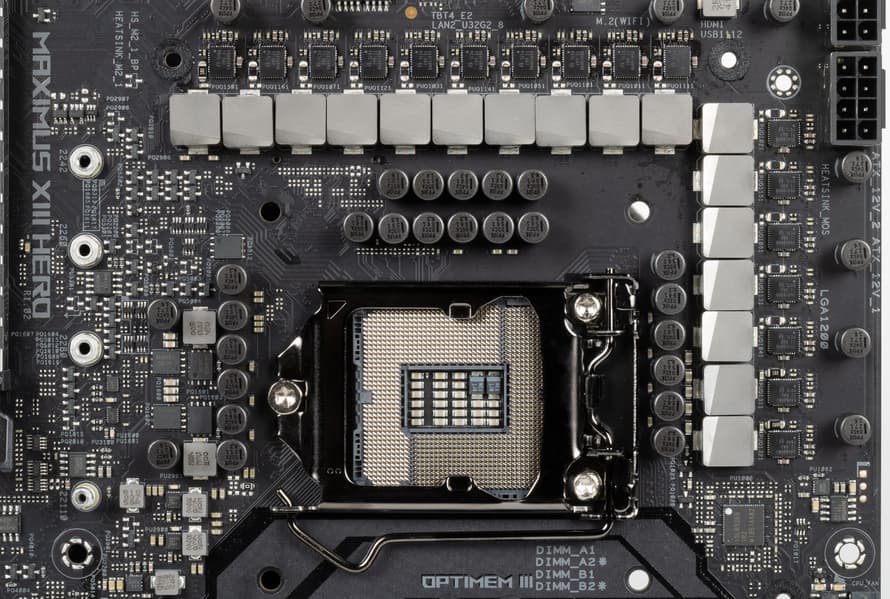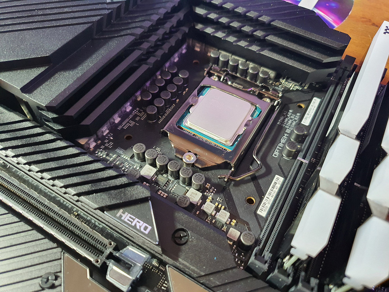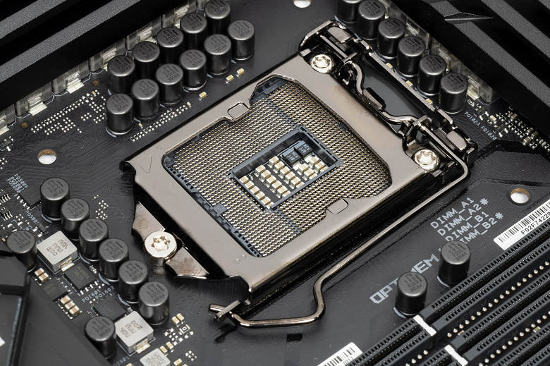 Еще раз надо напомнить, что Asus ROG Maximus XIII Hero поддерживает процессоры Intel Core 10-го и 11-го поколения, выполненные под разъем (сокет) LGA1200. Система крепления систем охлаждения для CPU точно такая же, как и для LGA1151.