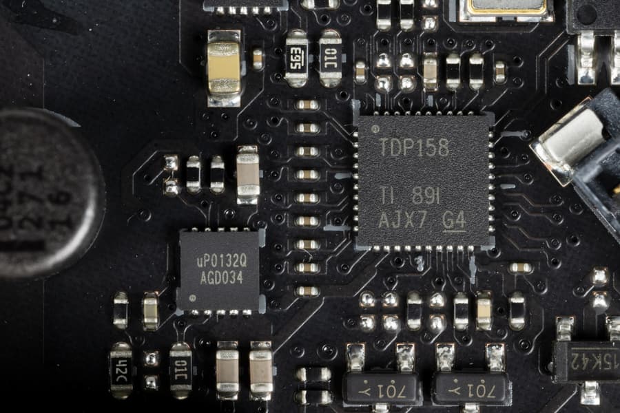 Поскольку процессоры Intel могут иметь интегрированную графику, то плата имеет гнездо вывода HDMI 2.0b, однако если графика в 11м поколении процессоров Intel основана на новой архитектуре и имеет встроенную поддержку версии HDMI 2.0b, то в 10м поколении — интегрирована поддержка лишь версии 1.4. Поэтому для конвертации (усиления, так сказать) версии до 2.0b имеется особый контроллер TDP158 (Texas Instruments).