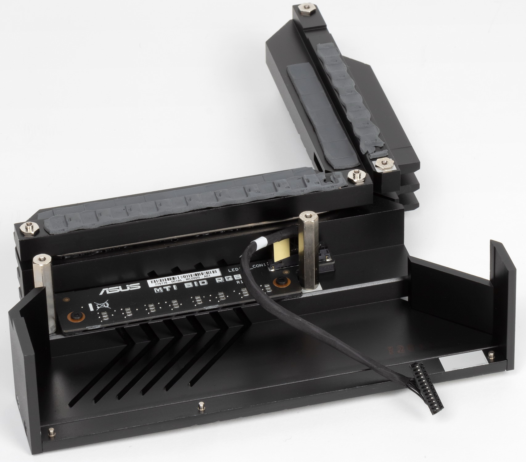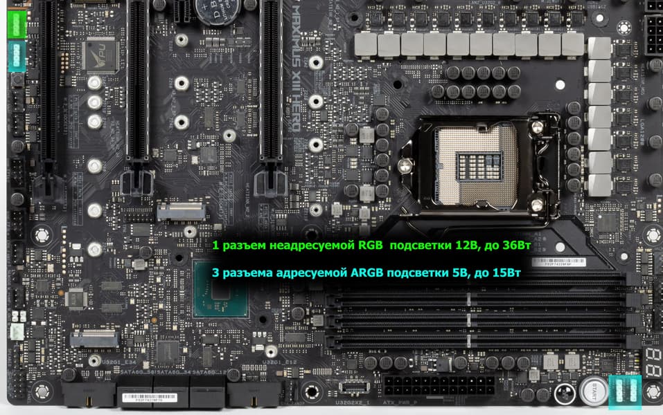 Радиатор VRM, идущий вдоль заднего блока портов, имеет кожух, прикрывающий тот самый блок, оснащенный подсветкой.
