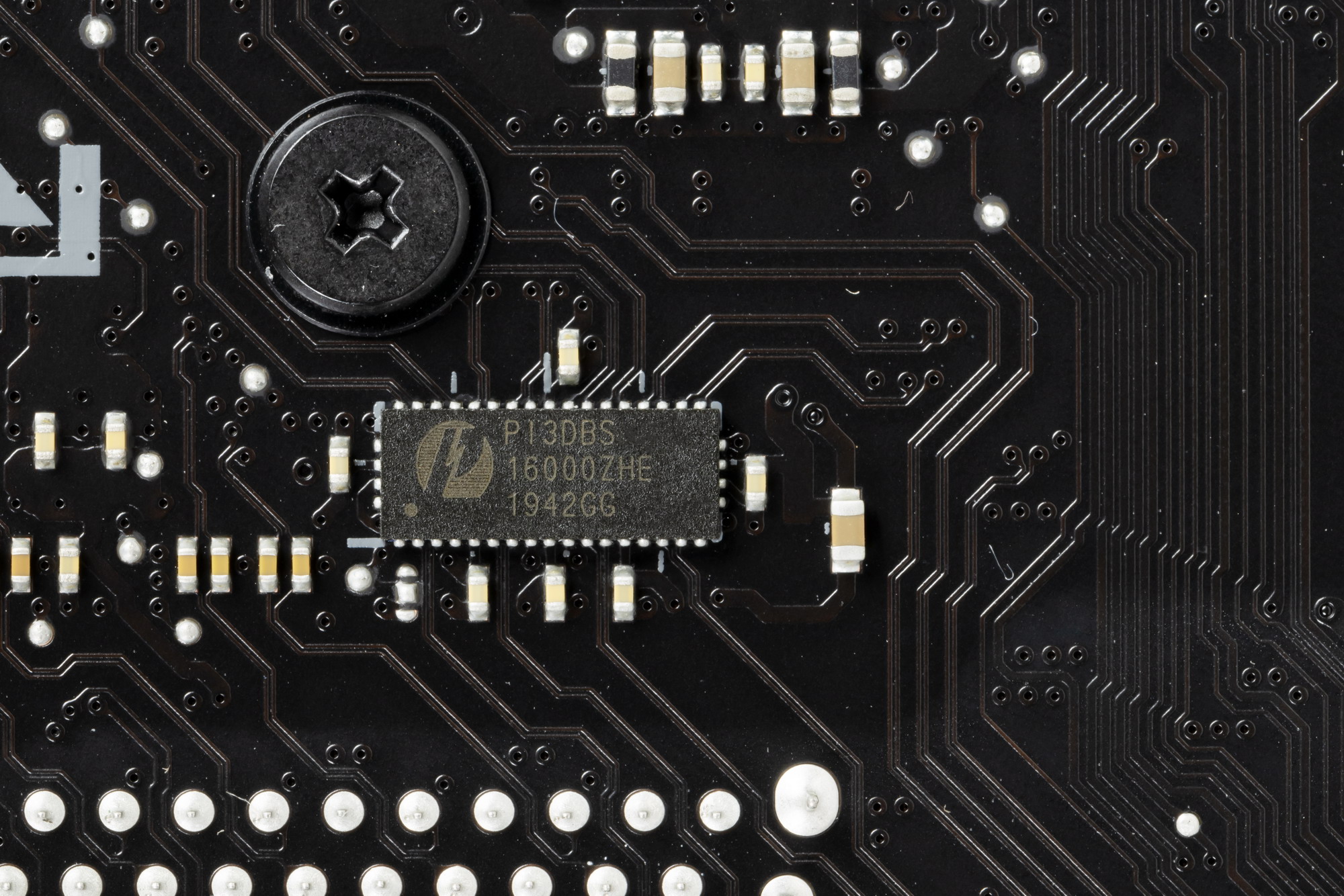 Как видим, перераспределение линий PCIe между слотами у этой материнки имеется, поэтому востребованы мультиплексоры PI3EQX16 от Diodes Inc. (ex Pericom).