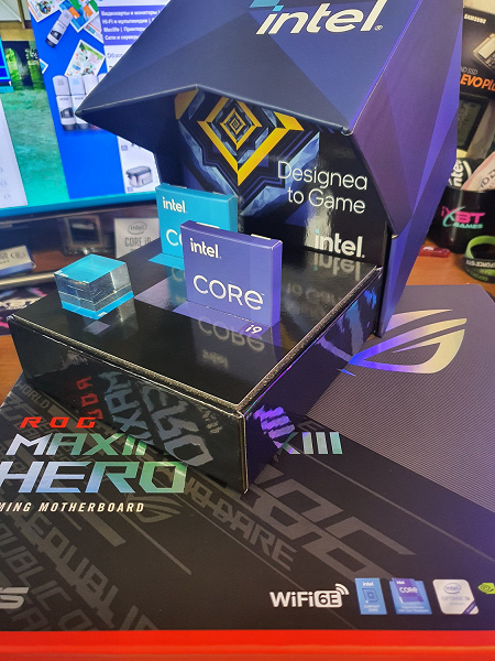 Еще раз отмечу, что я не тестирую процессоры так таковые, поэтому сравнений 11го поколения с конкурентами тут не будет, это не моя прерогатива. Мы изучим саму матплату, ее возможности. Если аналог от MSI к нам прибыл в шикарной поставке вместе с СВО и Intel Core i9-11900K, то в случае с Asus ситуация иная. Дело в том, что Asus ROG Maximus XIII Hero прибыла в составе «джентльменского набора обозревателя» от Intel. Да, этот комплект уже от самого производителя процессоров.