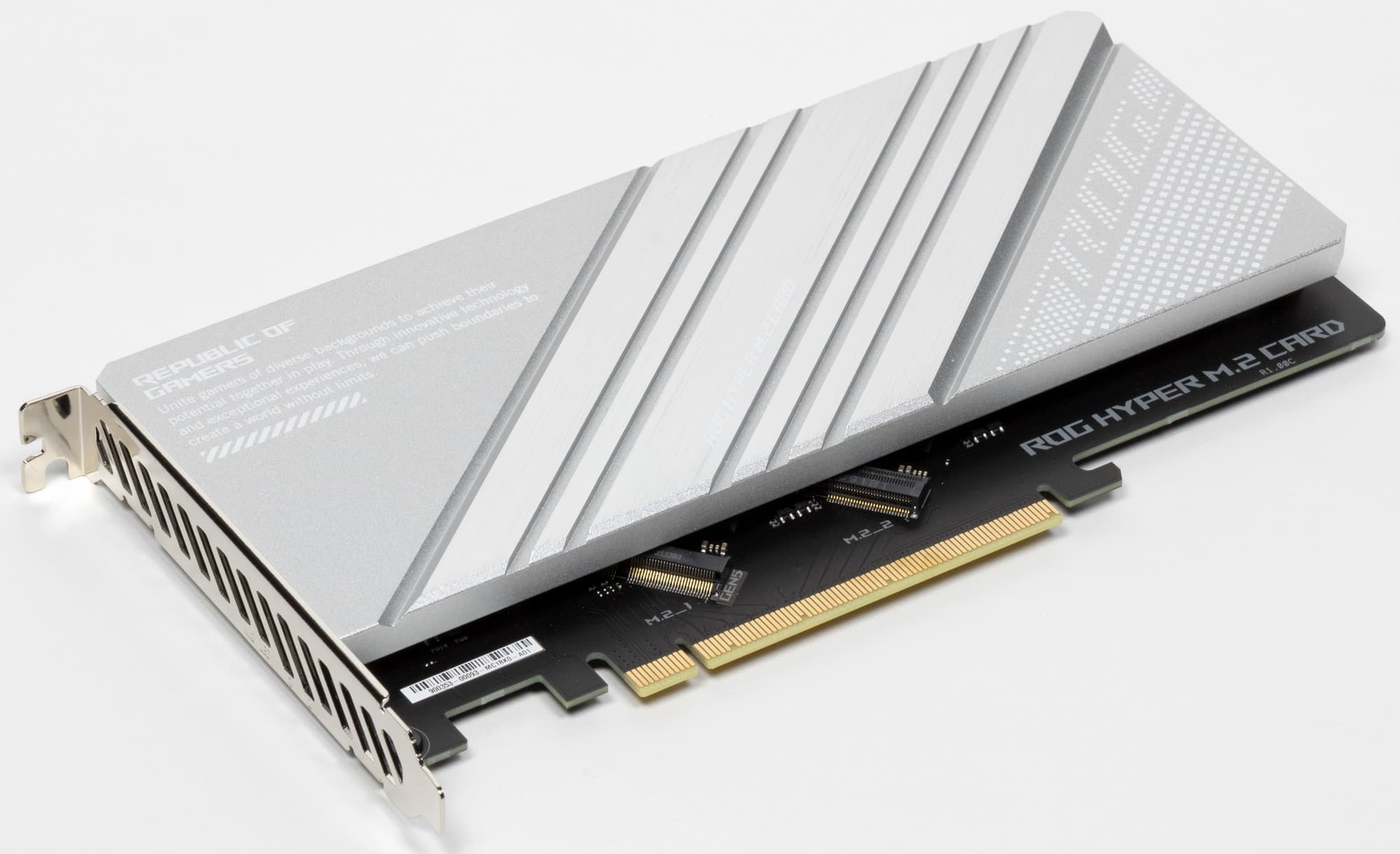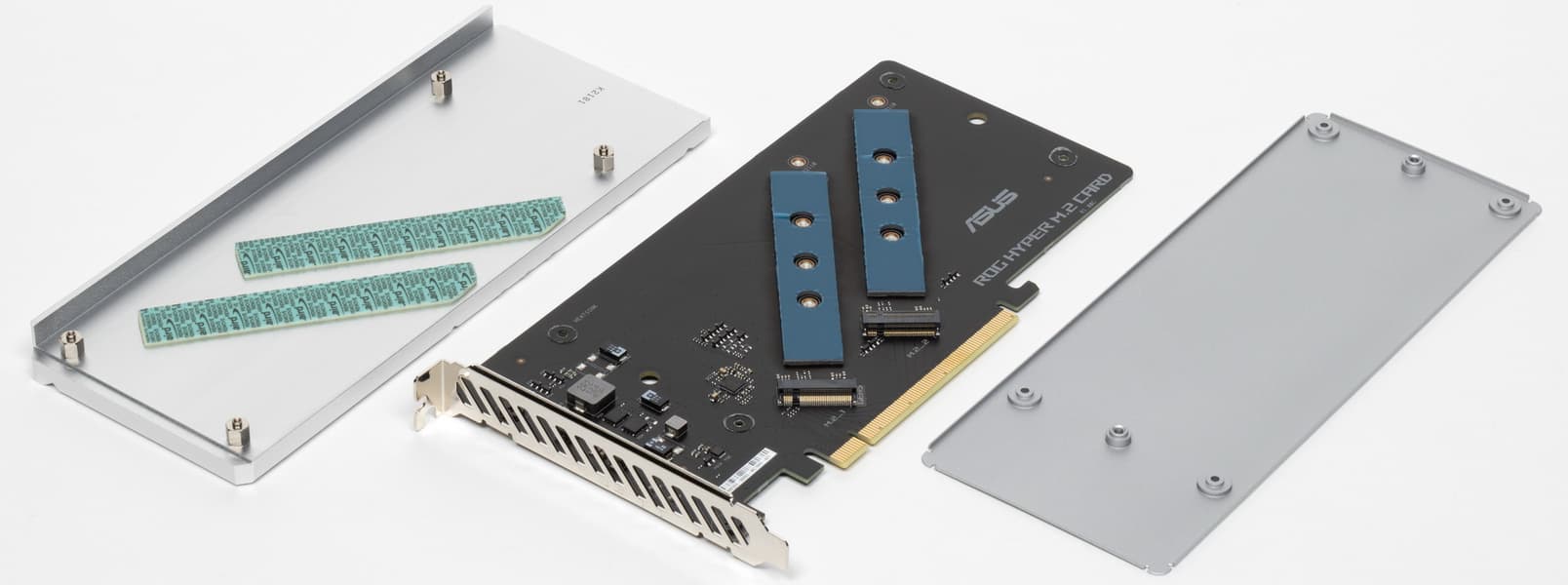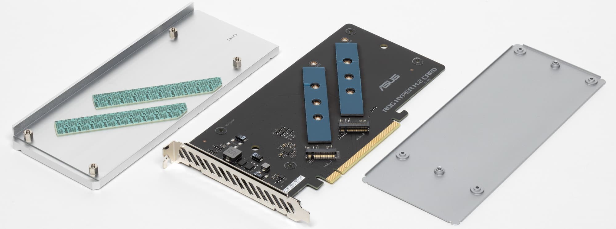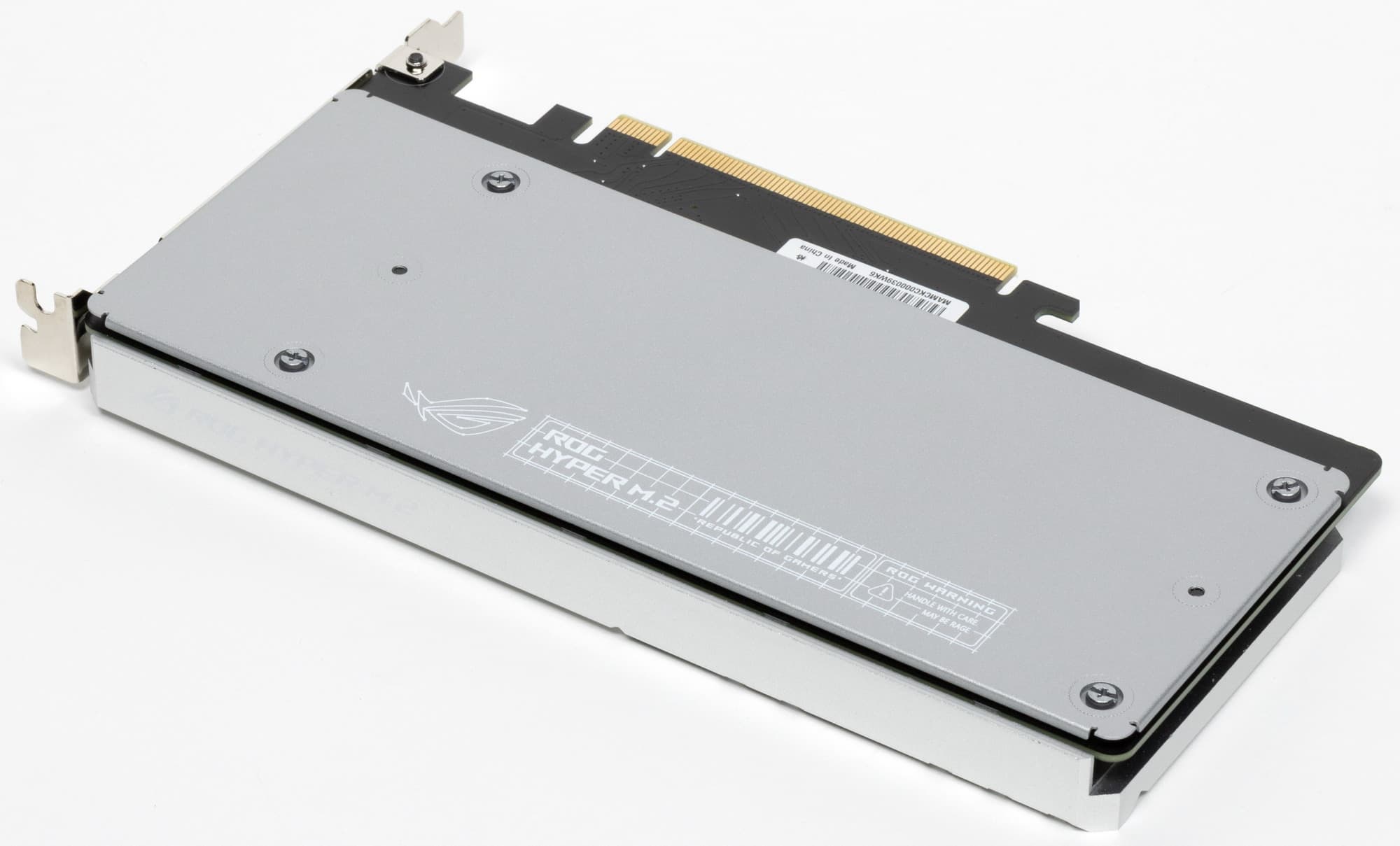 Слоты М.2 на ROG Hyper M.2 card также имеют охлаждение в лице крышки самой карты.