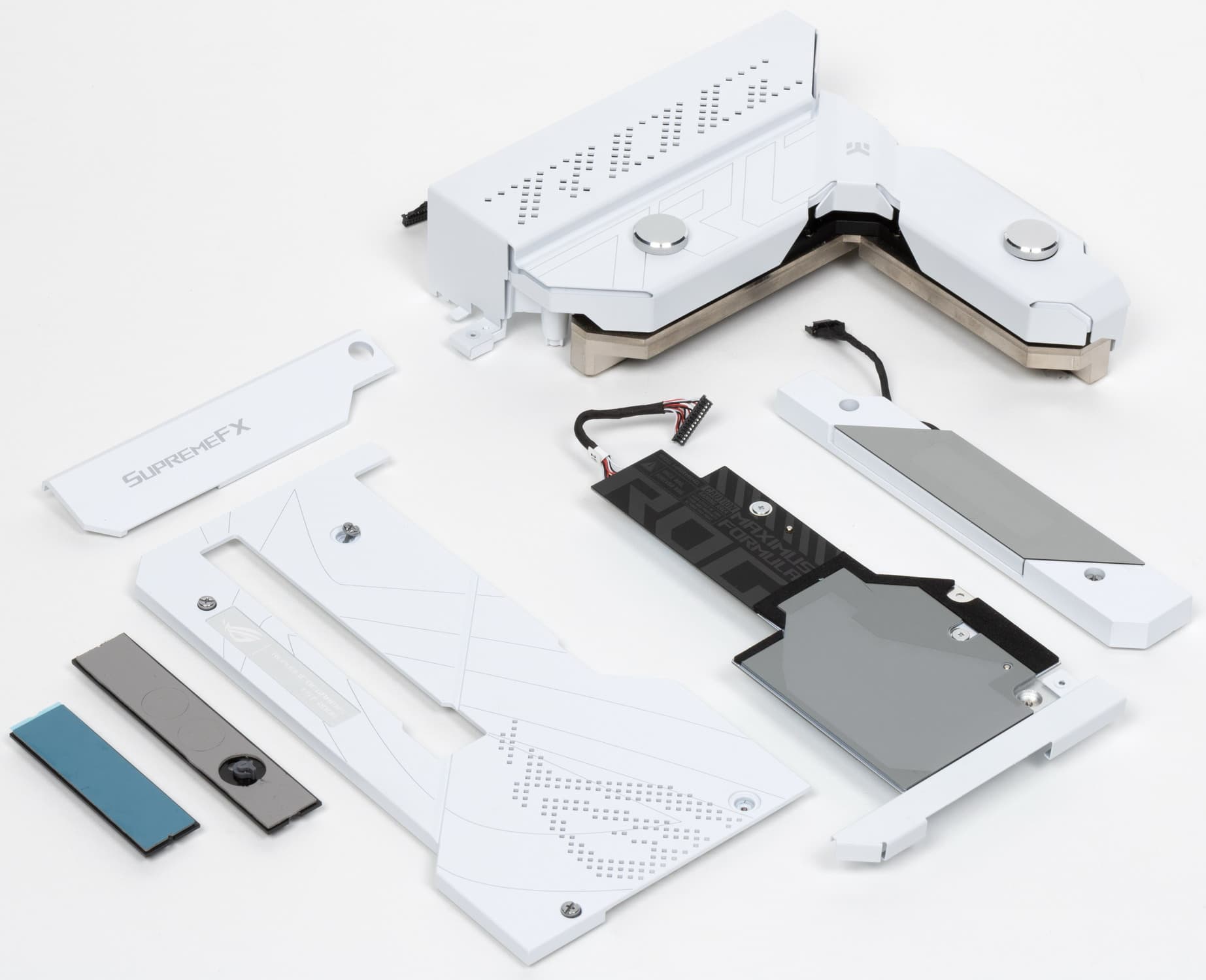 Обязательно стоит упомянуть и бонус поставки: универсальную раздвижную подставку под тяжелые видеокарты, карту ROG Hyper M.2, USB-флешку, брелок и т. д.