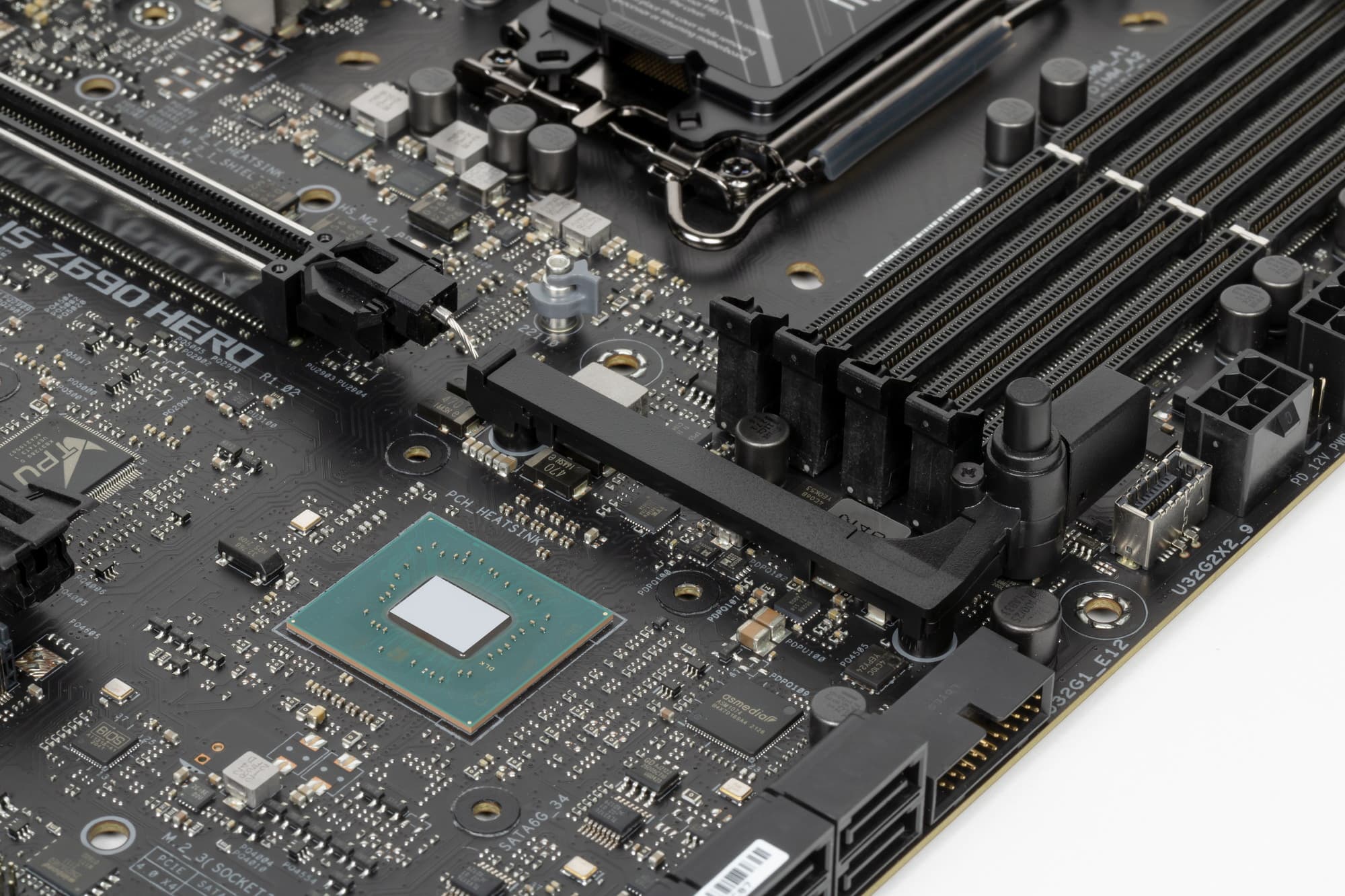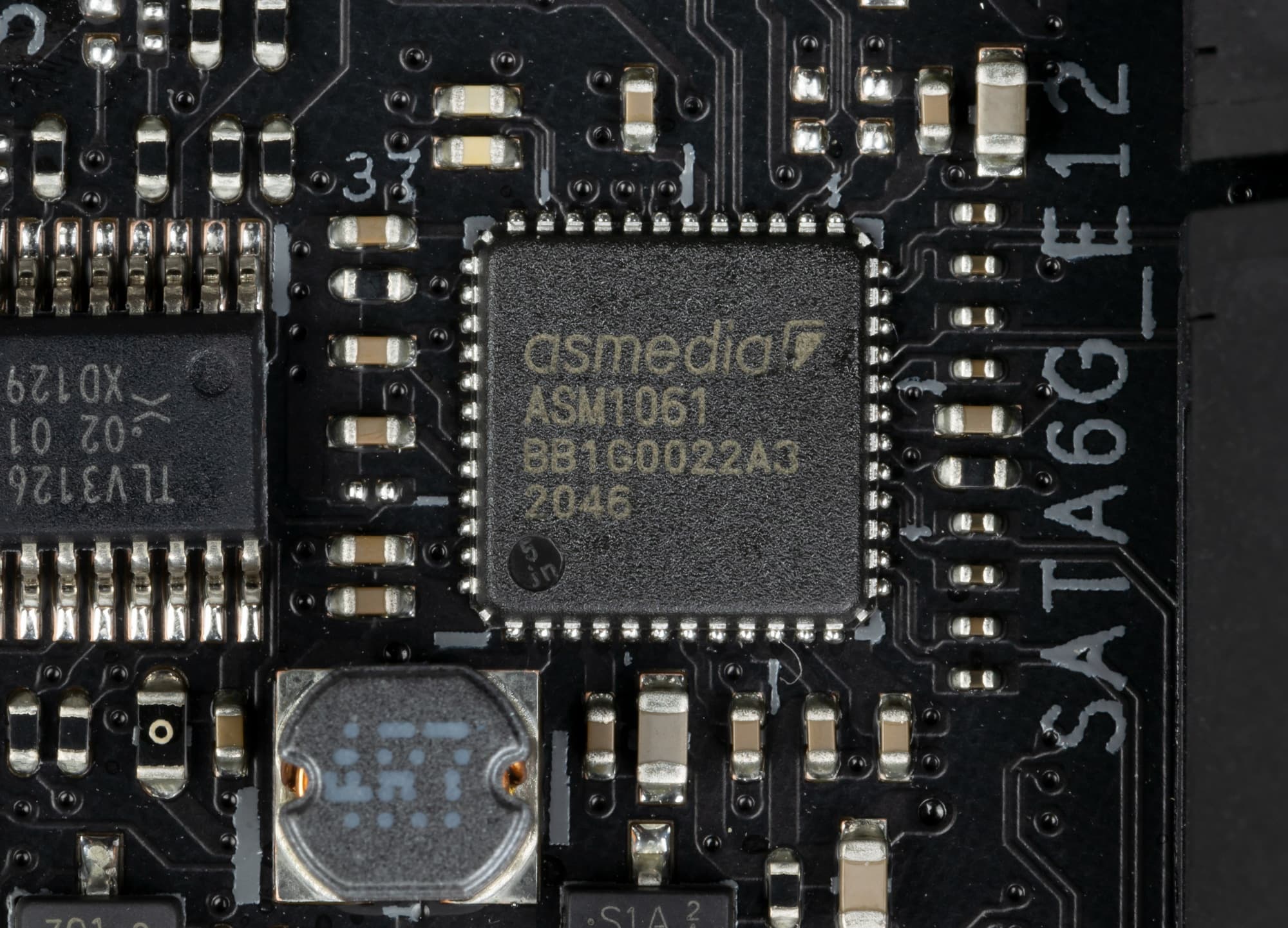 А два порта SATA 5,6 (промаркированные как E1, E2) реализованы через хаб ASM1061 от ASMedia (на него ушла 1 линия PCIe от Z690).