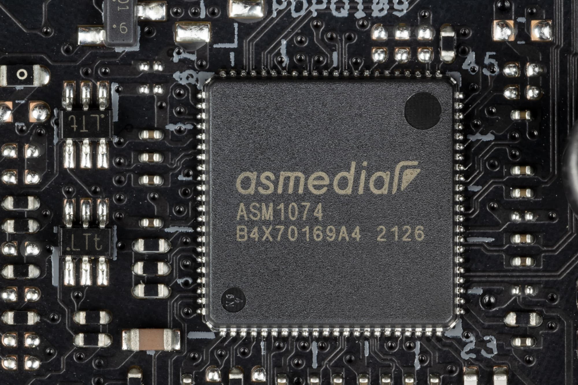 - ASMedia ASM1074 (USB 3.2 Gen1 хаб) (1 линия PCIe 3.0);