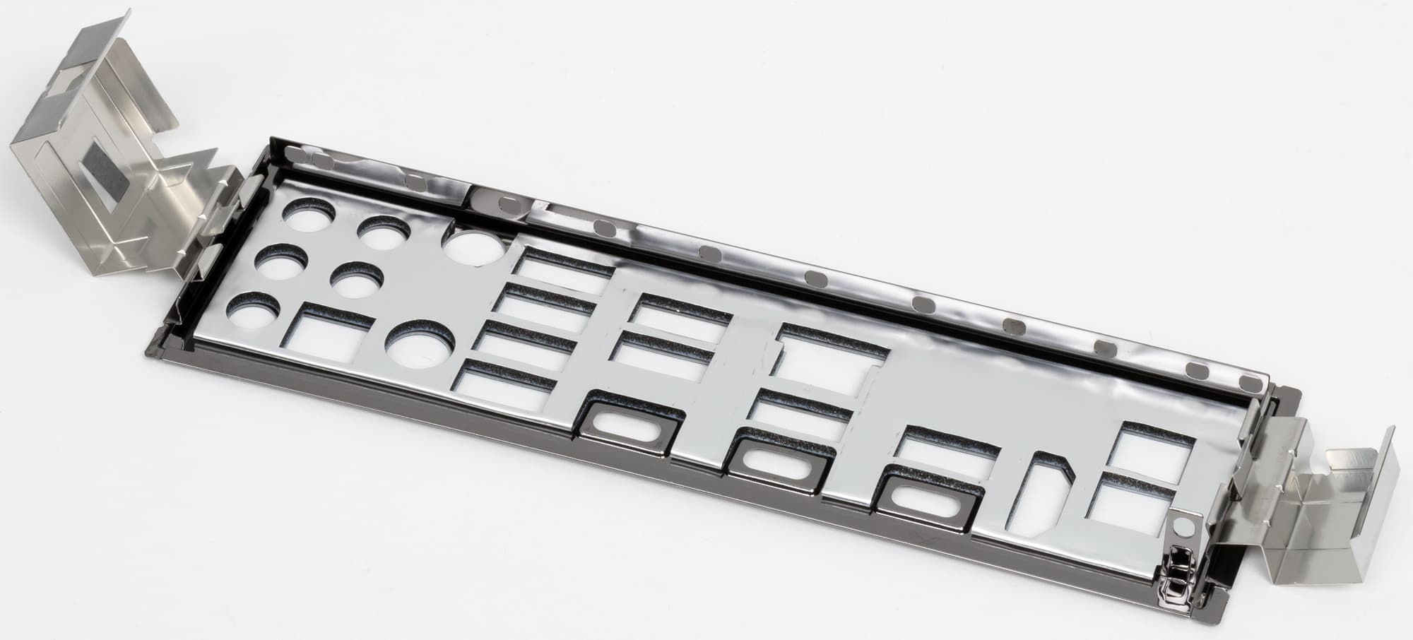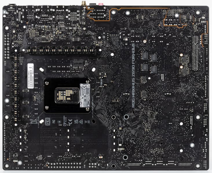 Матплата имеет бэкплейт, металлическую пластину с электроизолирующим покрытием, которая кроме защитных функций еще и помогает в охлаждении зоны VRM с оборотной стороны с помощью термоинтерфейса.