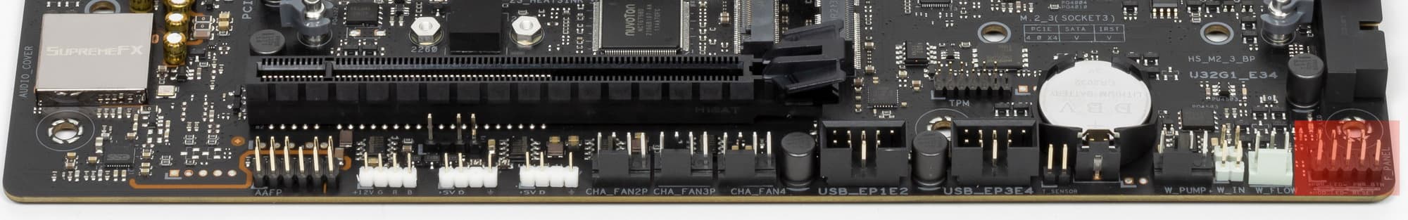 Через ПО или BIOS контролируется все гнезда для подключения воздушных вентиляторов или помп: они могут управляться как через ШИМ, так и банальным изменением напряжения/тока. Гнезда для помп СВО настроены на максимальную скорость.