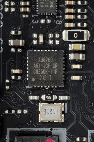 Следует особо отметить, что для снабжения этих контроллеров линиями USB 2.0 на плате имеется третий контроллер Alcor Link AU6260, и он уже получает линию USB 2.0 от Z690. Таким макаром для получения семи портов USB 2.0 инженеры потратили всего одну линию USB 2.0 от системного хаба (ну и три микросхемы от Alcor Link).