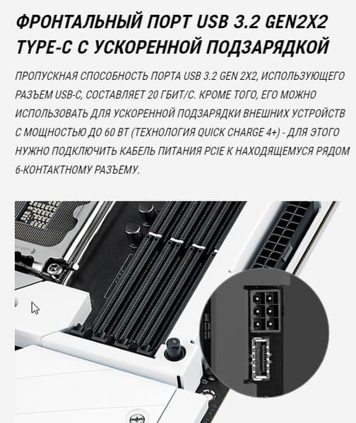 А для обеспечения быстрой зарядки таких гаджетов имеется дополнительный коннектор питания PCIe (6 контактов).