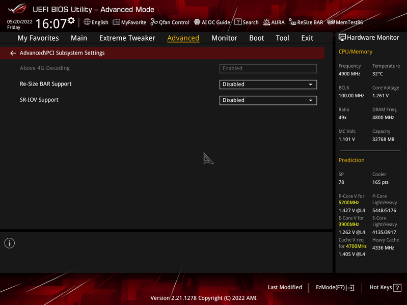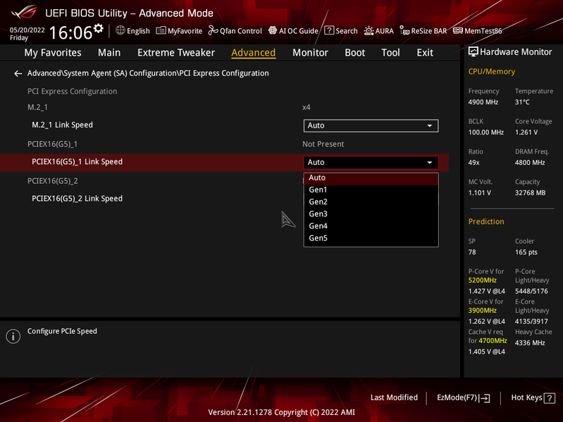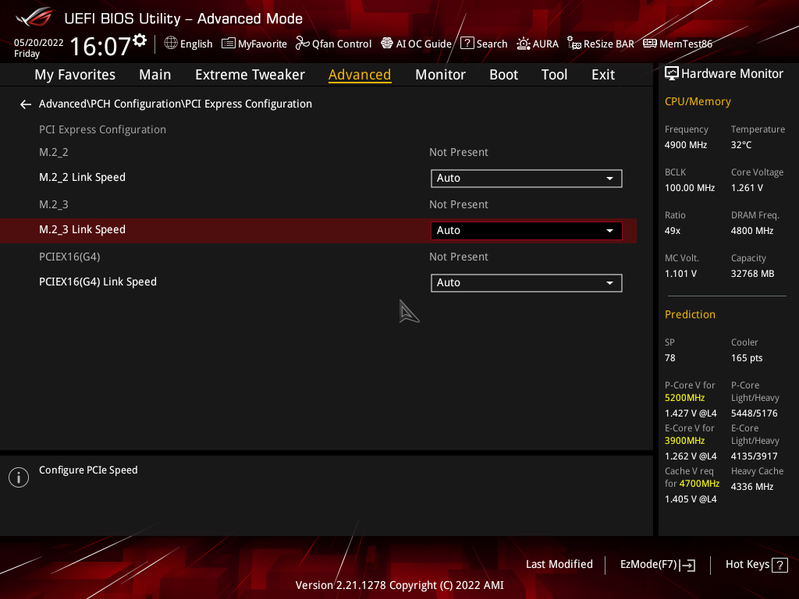 При этом на карте будет работать только один слот Hyper M.2_1, а Hyper M.2_2 будет отключен. Установка этой карты во второй слот PCIe x16_2 может дать возможность работать слоту Hyper M.2_1 в режиме PCIe 5.0! По сути это первая возможность испытать накопитель в форм-факторе М.2, поддерживающий PCIe 5.0. Перед использованием ROG Hyper M.2 card надо в BIOS включить соответствующие режимы.