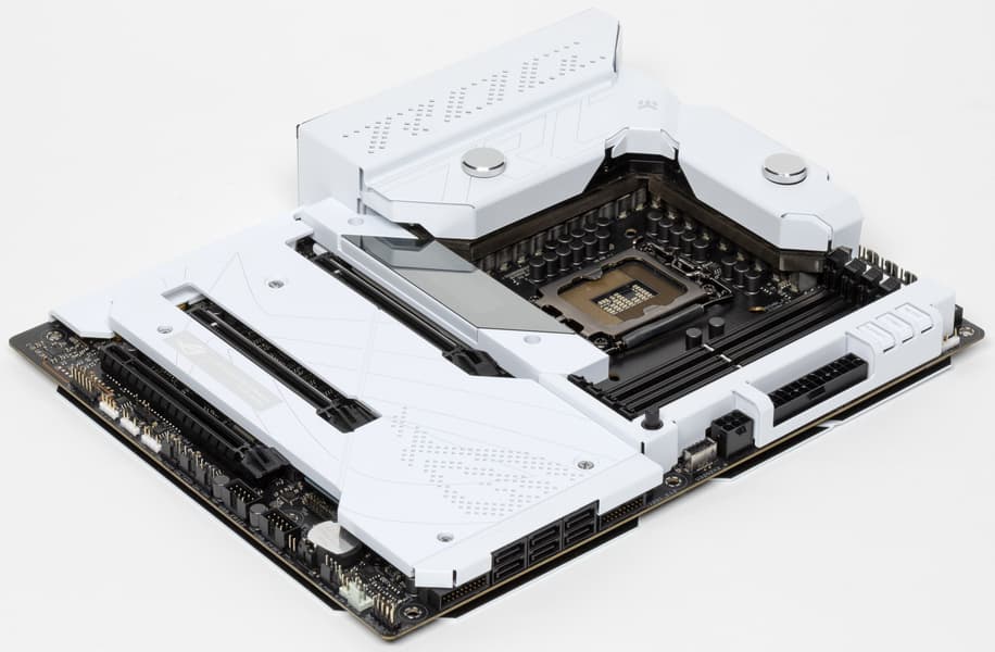 Рассматриваемая сегодня материнская плата относится к топовому суббренду ROG, при этом перед нами практически вариант Asus ROG Maximus Z690 Hero, но получивший особую систему охлаждения, а именно водоблок для работы с кастомной СВО, но только для охлаждения VRM. Для охлаждения процессора требуется либо водоблок, входящий в состав той же кастомной СВО, либо отдельный кулер.