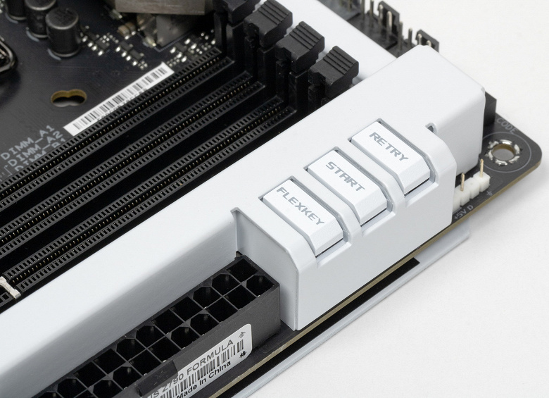 Ну и, конечно же, дизайн самой платы: белый цвет всех набортных «щитов», OLED-экран над слотом для видеокарты — всё это делает данную модель желанной для очень мощного игрового ПК с прозрачными стенками в белых тонах.