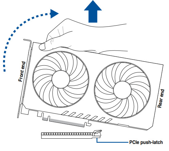 Для удобного извлечения видеокарт из слота PCIe x16_1 имеется особый механизм Q-Release Slim: надо потянуть видеокарту в районе крепежной планки вверх. Тогда сработает замок.