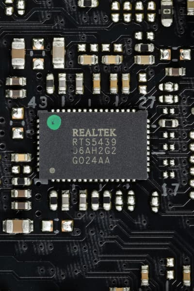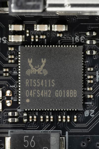 - 8 портов USB 3.2 Gen1: 4 реализованы через контроллер Realtek RTS5411 (на него потрачена 1 линия USB 3.2 Gen1 от Z890) и представлены 2 внутренними разъемами на материнской плате (каждый на 2 порта); еще 4 реализованы через второй контроллер Realtek RTS5411 (на него потрачена 1 линия USB 3.2 Gen1 от Z890) и представлены на задней панели портами Type-A (синего цвета);