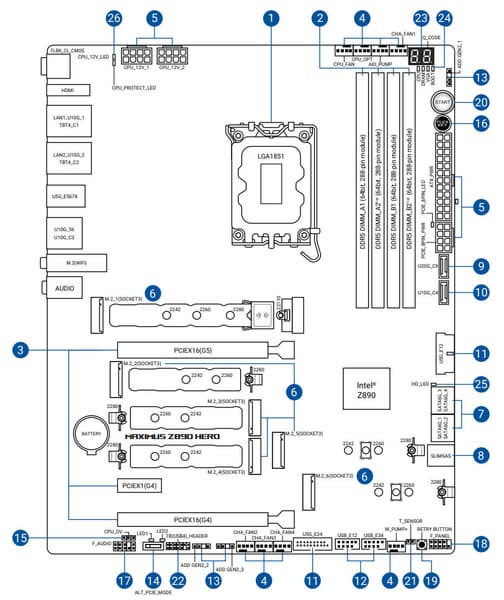 Asus ROG Maximus Z890 Hero поддерживает процессоры Intel Core Ultra 2xx, выполненные под разъем (сокет) LGA1851.