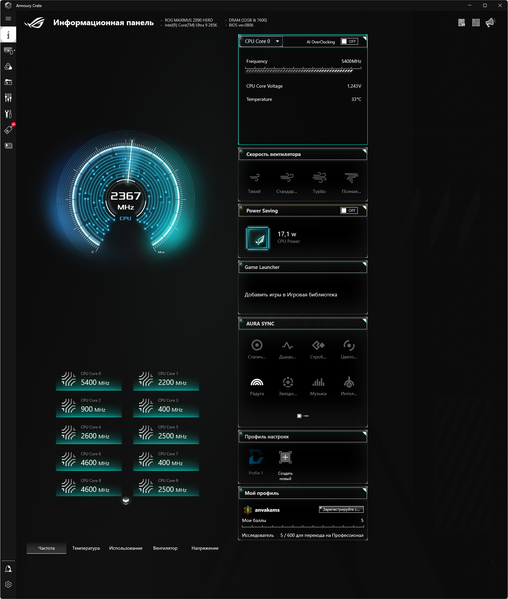Для энтузиастов и любителей всего самого производительного у платы имеется огромный арсенал настроек в BIOS Setup и возможность использовать фирменные утилиты под Windows, в том числе с интегрированными моделями ИИ для определения самого производительного режима работы ПК.