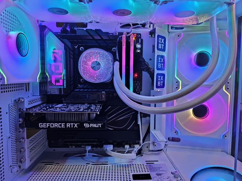 Радиатор VRM, идущий вдоль заднего блока портов, имеет кожух, прикрывающий тот самый блок, оснащенный подсветкой.