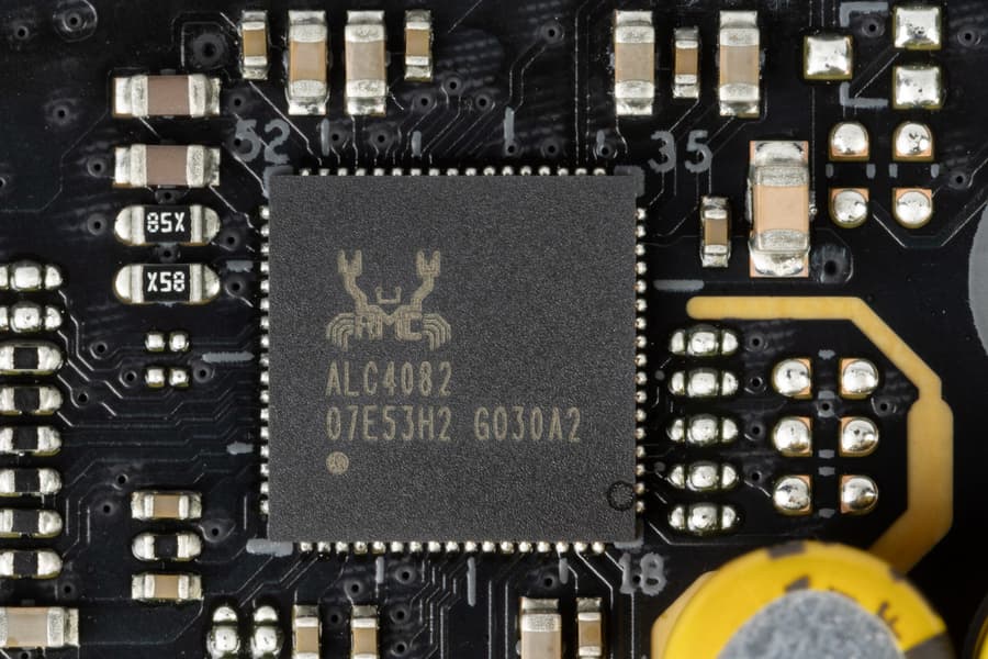 В данном случае плата оснащена аудиоподсистемой, где звуком заведует аудиокодек Realtek ALC4082, он целом обеспечивает вывод звука по схемам до 7.1 с разрешением до 32 бит / 384 кГц. Не забываем, что для работы такого кодека требуются сигнальные линии USB 2.0 (протокол HDA «Азалия» уже сильно устарел и убран из новой платформы).