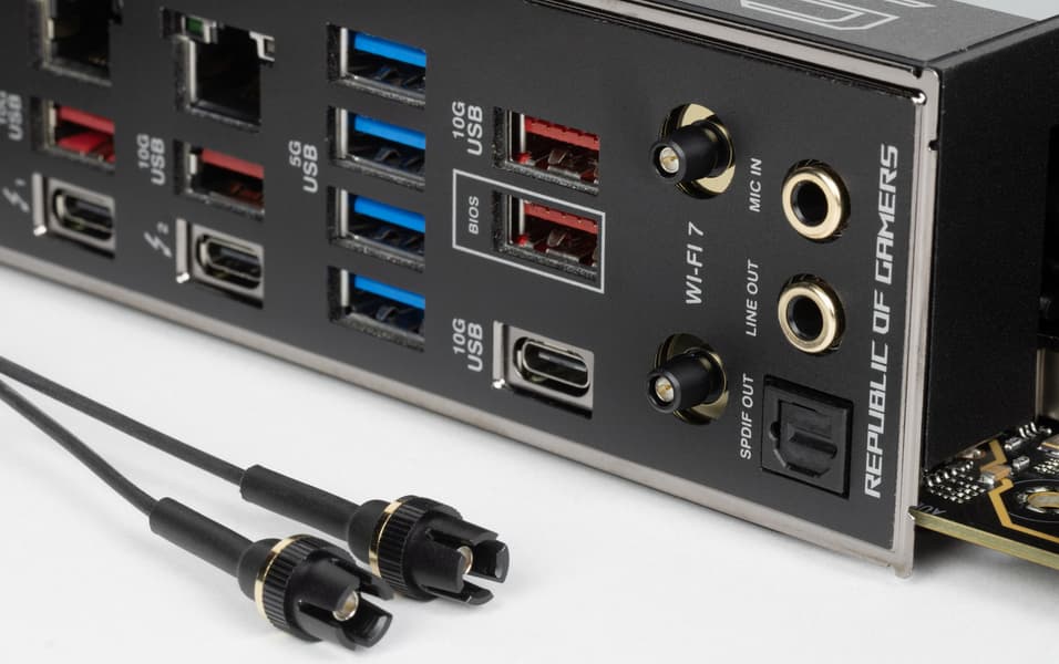 | USB-порты | 4 × USB 2.0: 2 внутренних разъема на 4 порта (AU6260) 4 × USB 3.2 Gen1: 2 внутренних разъема на 4 порта (RTS5411) 4 × USB 3.2 Gen1: 4 порта Type-A (RTS5411) 4 × USB 3.2 Gen2: 4 порта Type-A (красные) (Z890) 1 × USB 3.2 Gen2: 1 порт Type-C (Z890) 1 × USB 3.2 Gen2: внутренний разъем Type-C (Z890) 1 × USB 3.2 Gen2x2: внутренний разъем Type-C (Z890) 2 × USB4: 2 порта Type-C (CPU, Thunderbolt4) |