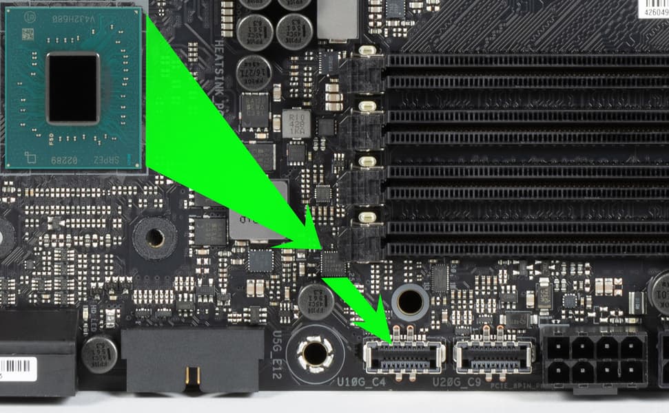 - 1 порт USB 3.2 Gen2x2: реализован с помощью Z890 и представлен одним внутренним портом Type-C (для подключения к соответствующему разъему на передней панели корпуса);