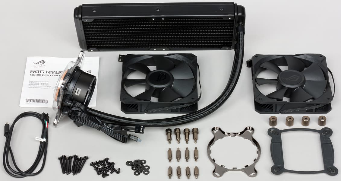 | Тип вентиляторов | осевые (аксиальные), ROG Ryuo fan Model 12, 2 шт. |