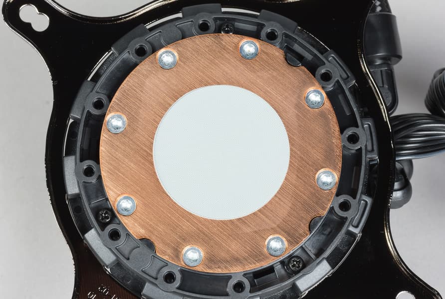 Система герметичная, заправлена, готова к использованию и не предполагает штатной возможности по расширению. Помпа интегрирована в один блок с теплосъемником. Подошвой теплосъемника, непосредственно прилегающей к крышке процессора, служит медная пластина. Ее внешняя поверхность ровная, отшлифована, но не полирована.