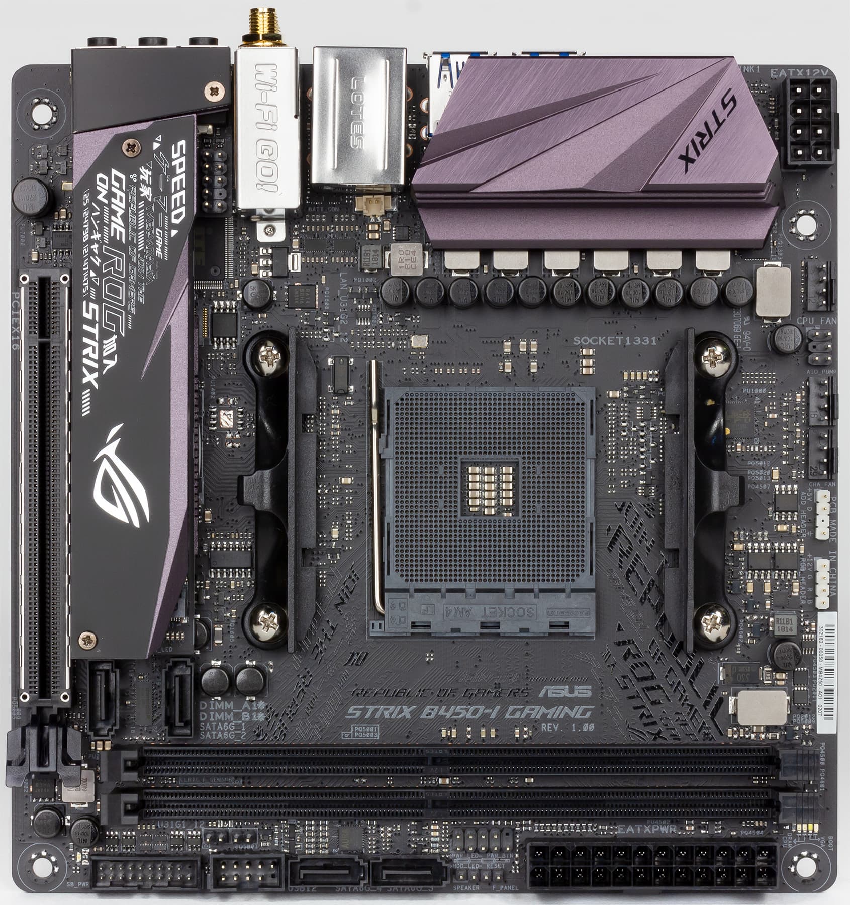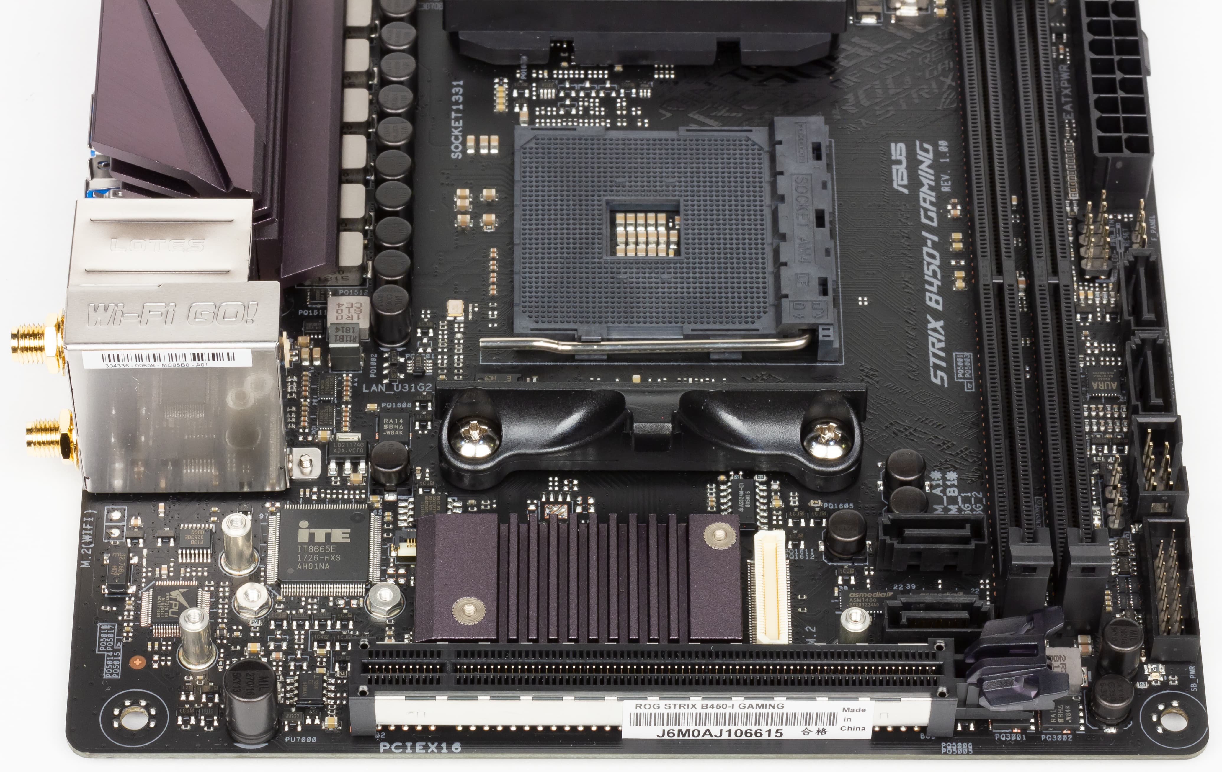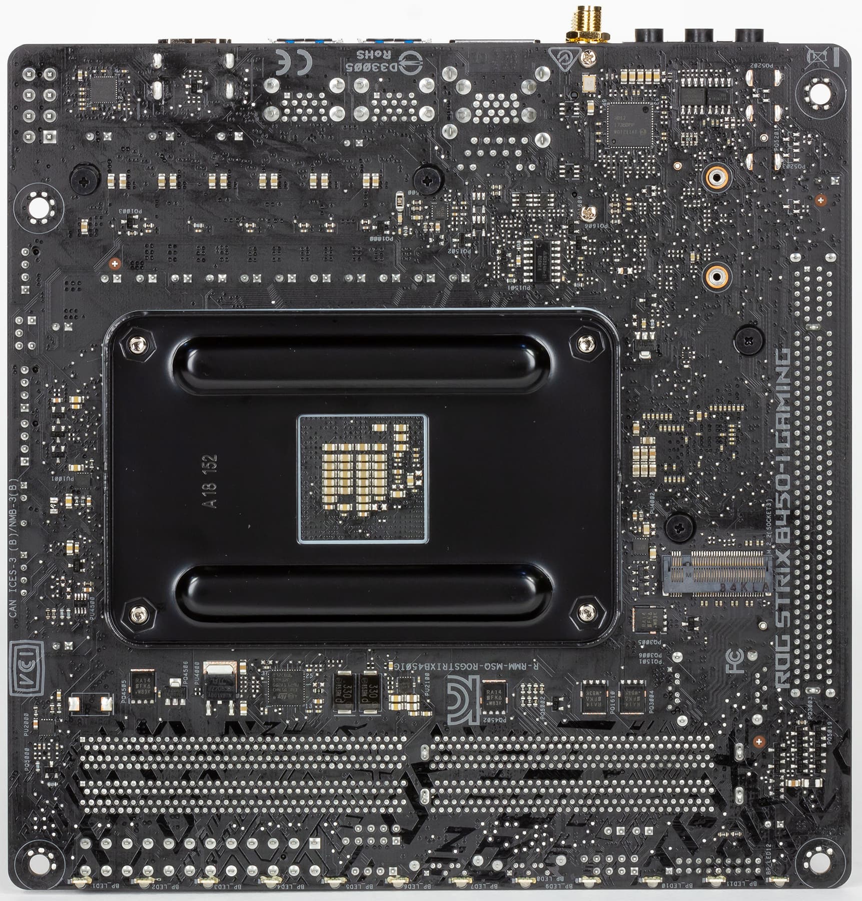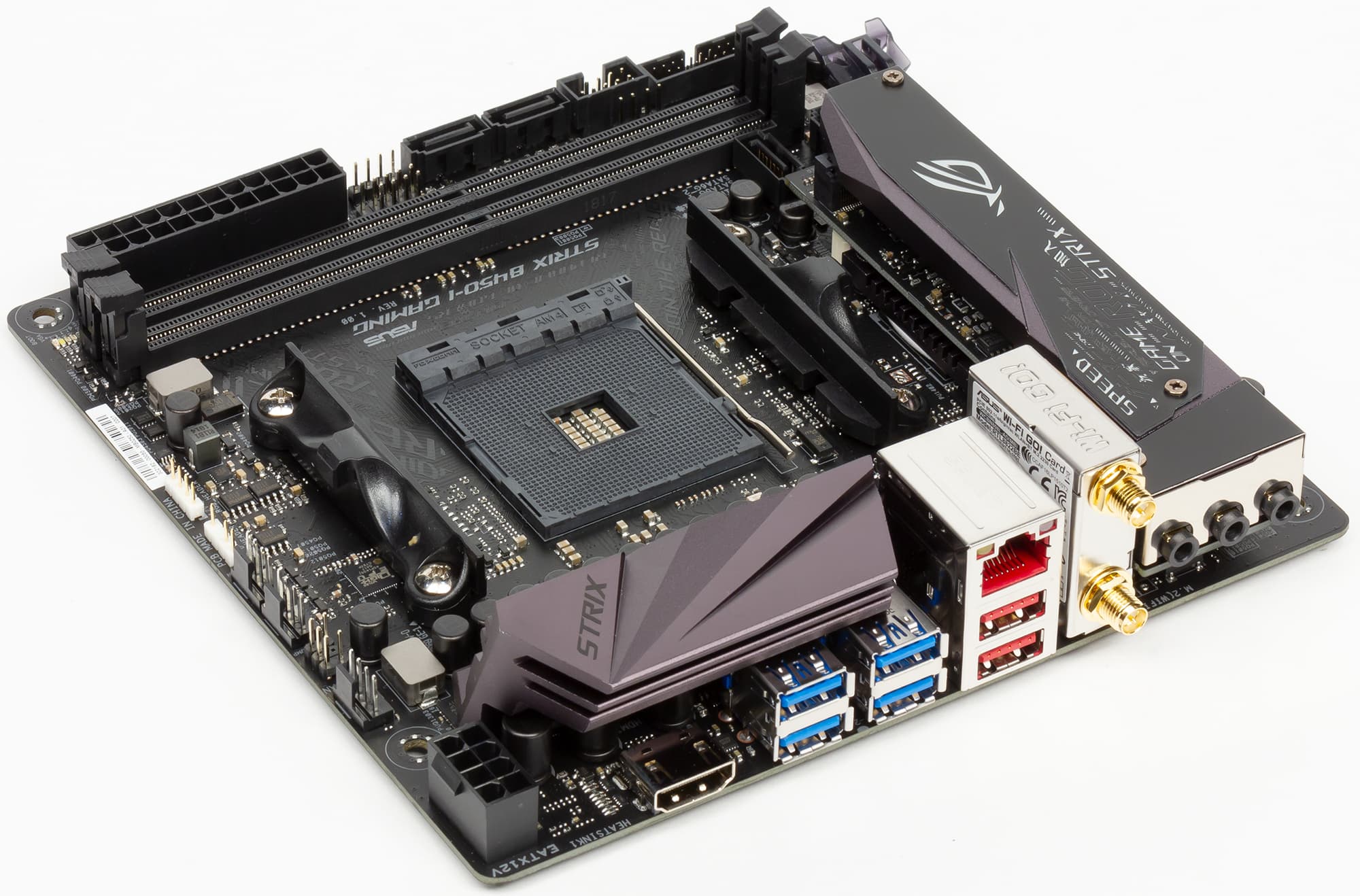 У плат на чипсете AMD B450, да еще и в форм-факторе Mini-ITX, количество дополнительных особенностей, как правило, минимально, и Asus ROG Strix B450-I Gaming не исключение. Тут нет ни кнопок, ни индикатора POST-кодов.