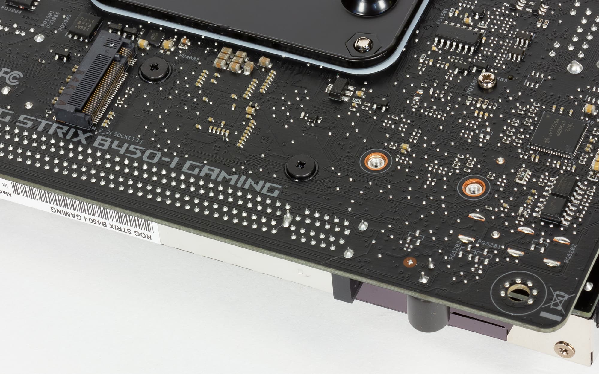 Один из разъемов M.2 расположен с обратной стороны платы, что типично для плат с таким форм-фактором.
