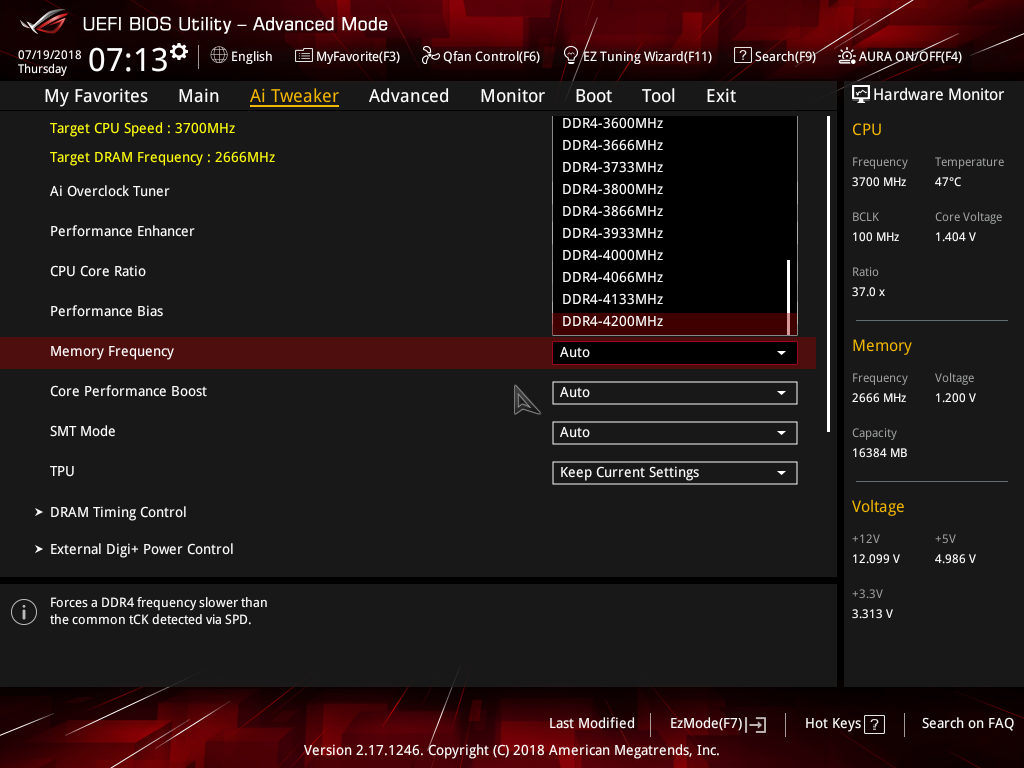 Согласно спецификации, максимальная тактовая частота памяти для процессоров Ryzen первого поколения и процессоров Ryzen with Radeon Vega Graphics (APU) составляет 3200 МГц (в режиме разгона), а для процессоров Ryzen второго поколения — 3600 МГц. Тем не менее, в настройках UEFI BIOS максимальную частоту памяти можно установить вплоть до 4200 МГц.