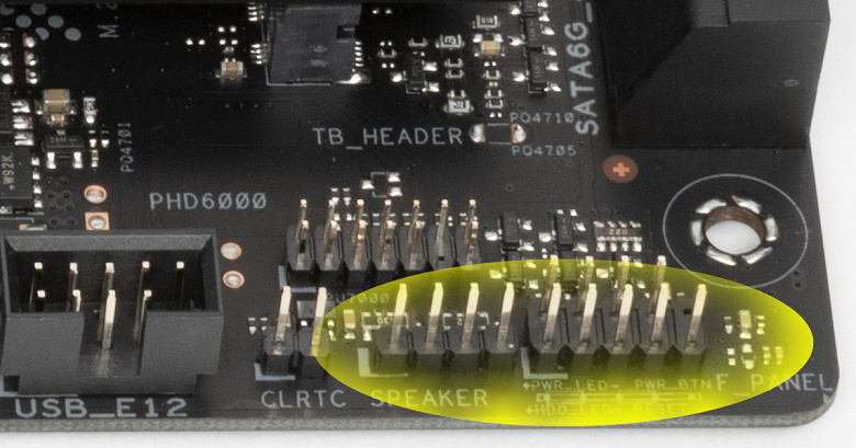 | Прочие внутренние элементы | 24-контактный разъем питания ATX 1 8-контактный разъем питания EPS12V 1 4-контактный разъем питания EPS12V 1 слот M.2 (E-key), занят адаптером беспроводных сетей 1 разъем для подключения портов USB 3.2 Gen2 Type-C 1 разъем для подключения 2 портов USB 3.2 Gen1 2 разъема для подключения 4 портов USB 2.0 6 разъемов для подключения 4-контактных вентиляторов и помп ЖСО 2 разъема для подключения неадресуемой RGB-ленты 2 разъема для подключения адресуемой ARGB-ленты 1 разъем аудио для передней панели корпуса 1 разъем Thunderbolt 1 разъем S/PDIF 2 разъема для подключения управления с передней панели корпуса 1 разъем подключения термодатчика |