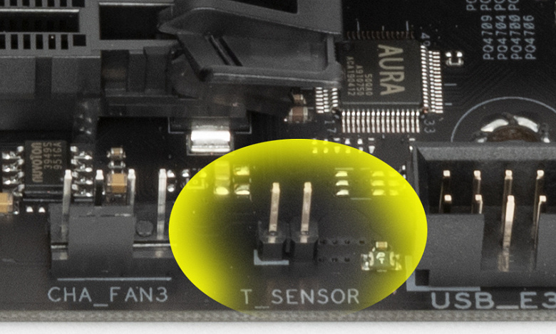 И напомню, что чипсетный радиатор тоже имеет пластиковую вставку, рассеивающую подсветку из светодиодов, установленных на самой PCB около B550.
