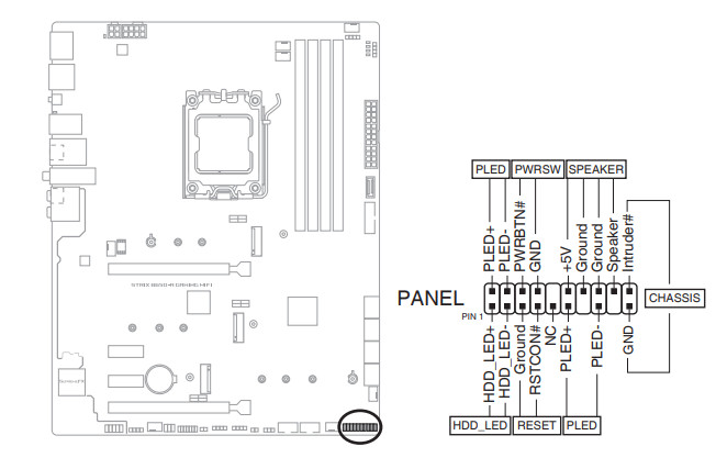 Форм-фактор ATX имеет размеры до 305×244 мм, а E-ATX — до 305×330 мм. Материнская плата Asus ROG Strix B650-A Gaming WiFi имеет размеры 305×244 мм, поэтому выполнена в форм-факторе ATX, и на ней имеются 9 монтажных отверстий для установки в корпус.