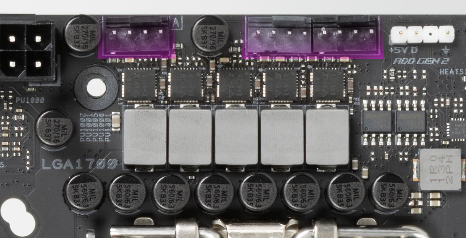 Как мы видим, охлаждение чипсета (маленький радиатор, расположенный под слотом М.2_1) организовано отдельно от силовых преобразователей. VRM-секция имеет свои два раздельных радиатора.