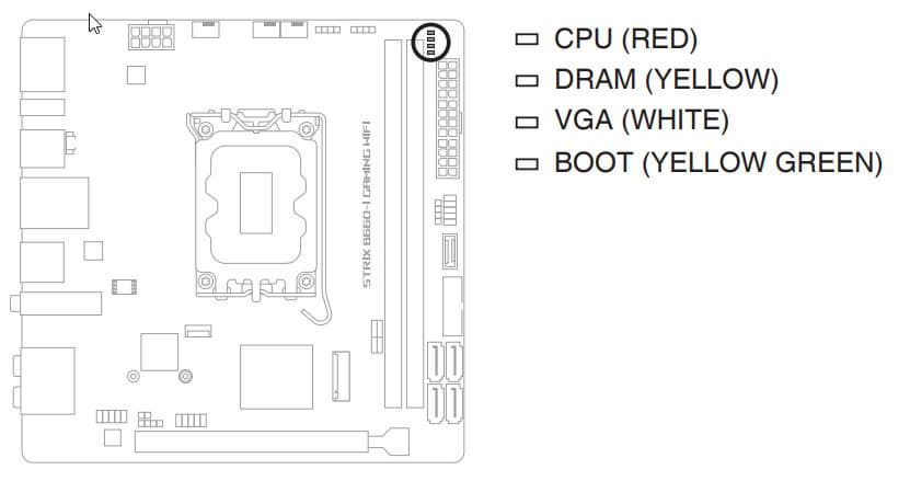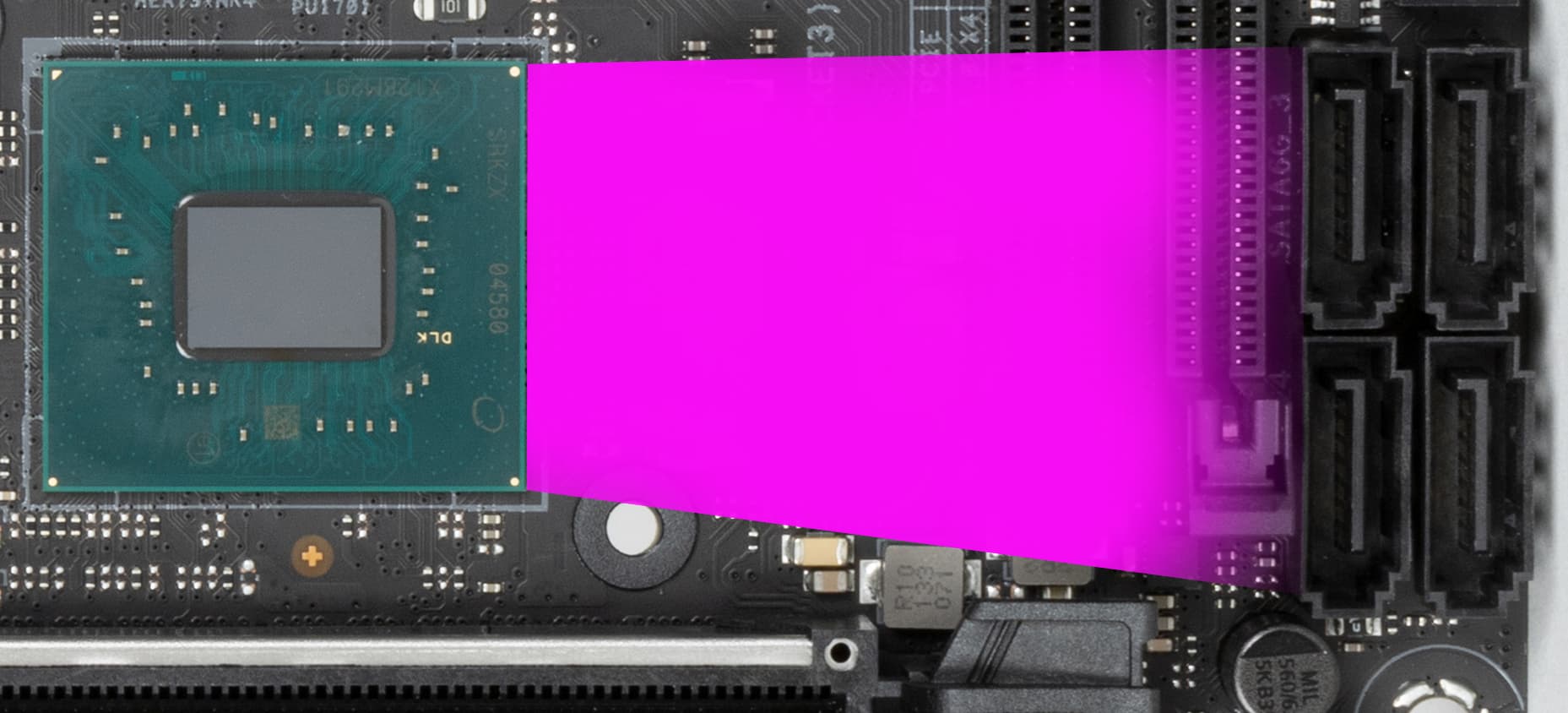 Порты SATA реализованы через чипсет B660 и поддерживают создание RAID. Стоит обратить внимание на то, что порты SATA вертикально ориентированы и сгруппированы на нижнем конце платы. На рисунке ниже все наглядно видно.