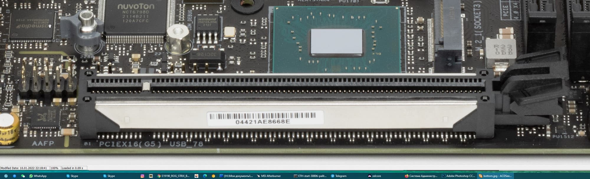 Слот M.2_1 имеет свой радиатор, для охлаждения системного чипсета под слотом есть свой небольшой радиатор. А вот слот М.2_2 – без охлаждения, ибо и так понятно, что между материнкой и основанием корпуса очень узкое пространство. Кстати, это следует учитывать, что модуль в М.2_2 будет находиться не в лучших температурных условиях.