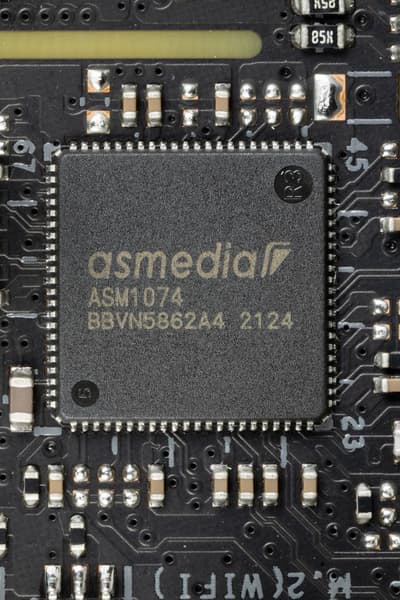 - ASMedia ASM1074 (USB 3.2 Gen1 хаб) (1 линия PCIe 3.0);