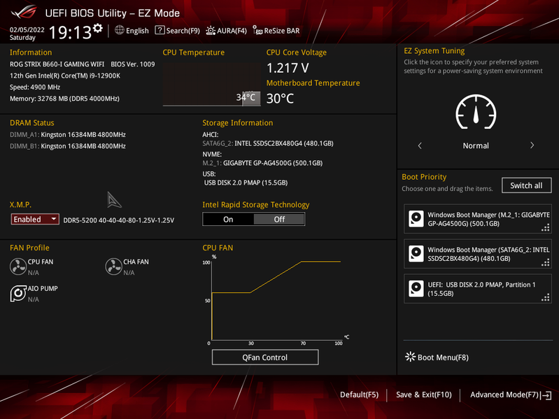 Для установки модулей памяти на плате Asus имеется два DIMM-слота. Плата поддерживает небуферизованную память DDR5 (non-EСС), а максимальный объем памяти составляет 64 ГБ. Разумеется, поддерживаются профили XMP.