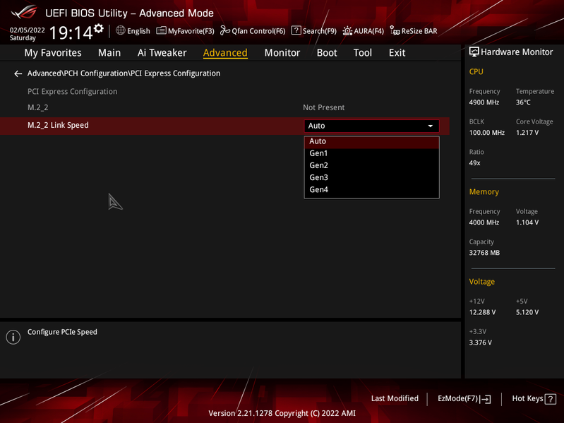 Теперь посмотрим выше на то, как работают процессоры в данной конфигурации. У CPU 12-го поколения всего 20 линий PCIe, 4 из них версии PCIe 4.0 отведены на порт М.2 (M2_1). Оставшиеся 16 линий PCIe 5.0 идут на единственный слот PCIe x16_1, поэтому вариантов переключений нет, как и мультиплексоров для этих целей.
