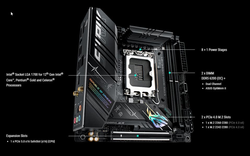Герой нынешнего обзора — Asus ROG Strix B660-I Gaming WiFi.