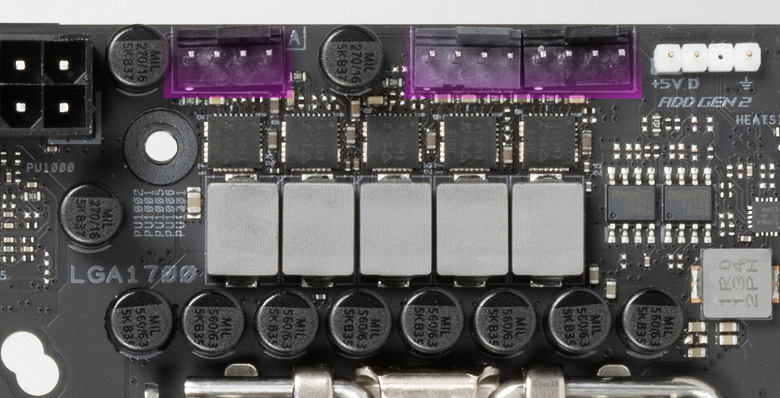 Схема питания процессора выполнена по схеме 2+8+1 (всего 11 фаз, 8 на VCore, 1 на iGPU и 2 на VCCIO).