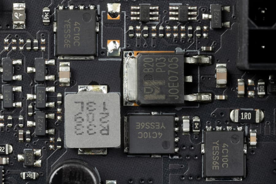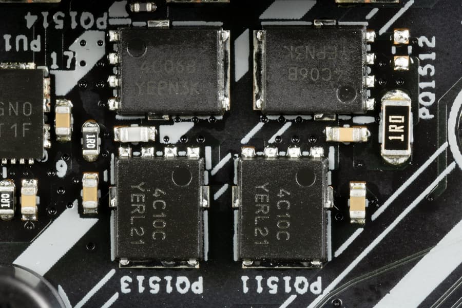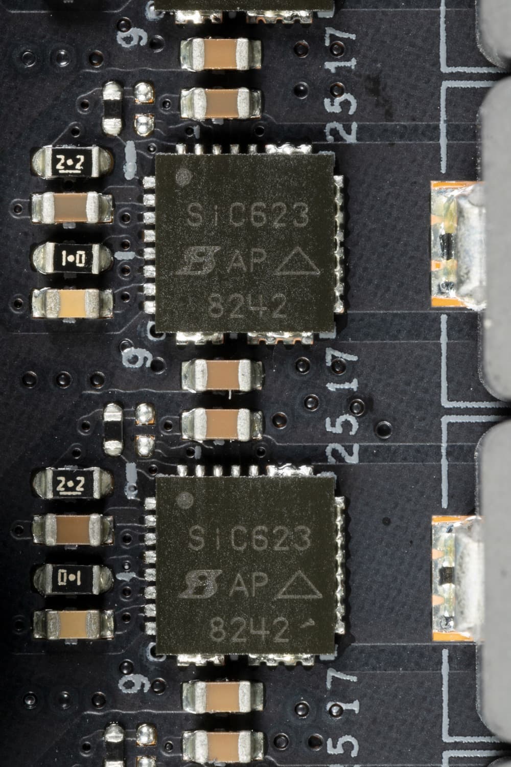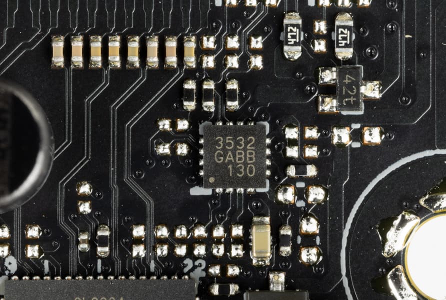 Каждый канал фазы имеет суперферритовый дроссель и DrMOS SiC623 (60A) от Vishay для VCore и встроенного графического ядра.