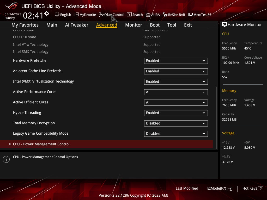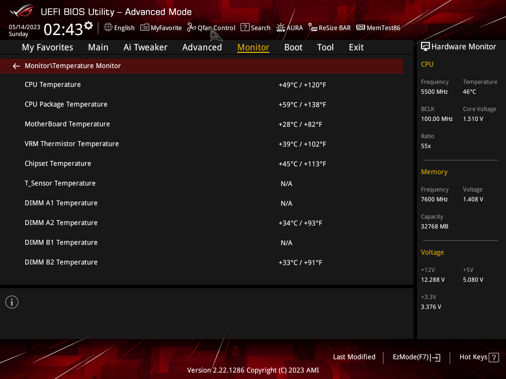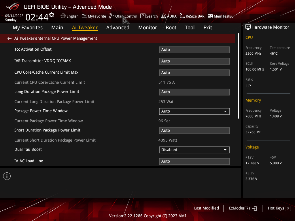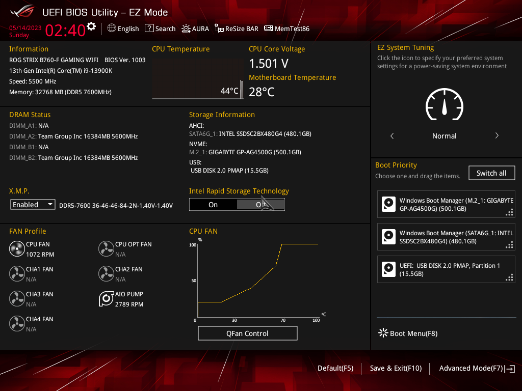 Как мы видим, автоматический разгон даже самого мощного на сегодня 13900К получился приличный: до 5,5/4,3 ГГц. Но при этом даже такая мощная СВО еле справлялась с нагрузкой, работая на максимуме. Причиной тому – завышенный вольтаж на ядре процессора (выше 1.5 В), все же, как показал опыт, выше 1,35 – 1,4 В поднимать не стоит, многие СВО перестанут справляться с нагревом 13900К на очень высоких частотах.