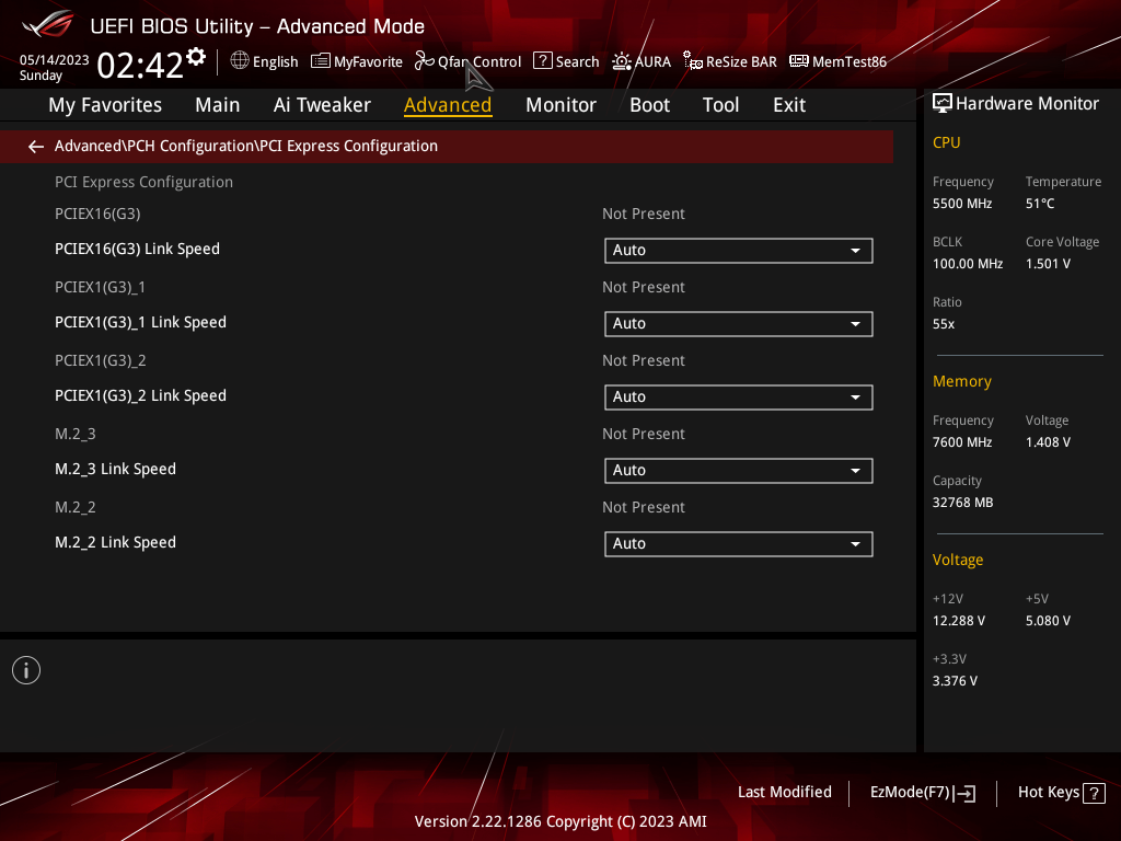 | Слоты расширения | 1 × PCIe 5.0 x16 (режим x16) 1 × PCIe 3.0 x16 (режим x4) 2 × PCIe 3.0 x1 |