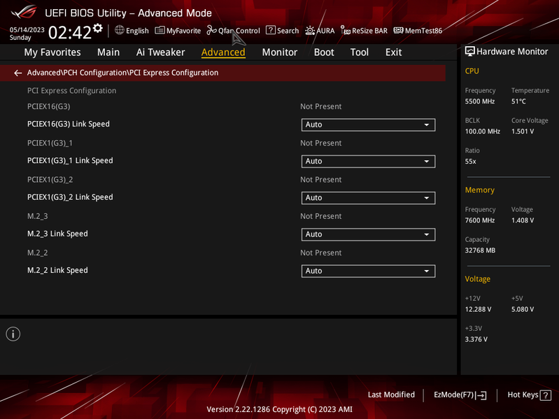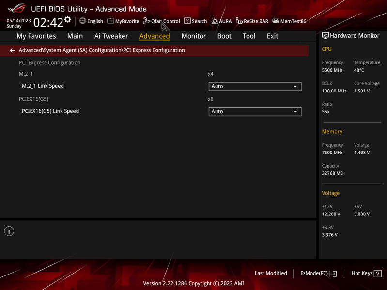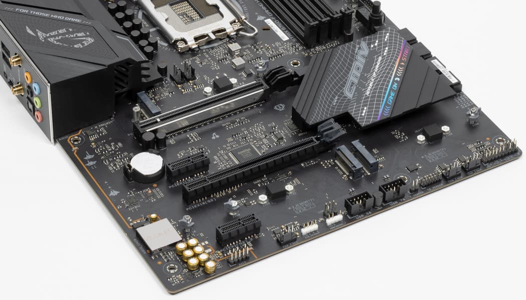 Теперь посмотрим выше на то, как работают процессоры в данной конфигурации. У CPU 12/13-го поколений всего 20 линий PCIe, 4 из них версии PCIe 4.0 отведены на порт М.2 (M2_1). Оставшиеся 16 линий PCIe 5.0 идут на единственный слот PCIe x16_1, поэтому вариантов переключений нет, как и мультиплексоров для этих целей.